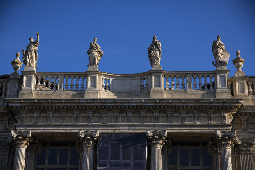 Giustizia, Liberalità, Magnanimità e Abbondanza spiccano il “volo” nel cielo di Torino per tornare all’antico splendore. Inizierà domani l’operazione di spostamento a terra delle quattro monumentali statue in marmo di Brossasco, alte più di 4 metri e pesanti oltre 3 tonnellate ciascuna, che coronano la balaustra del corpo centrale di Palazzo Madama e raffigurano ermetiche allegorie del “Buon Governo”. Dopo un innovativo intervento di sezionamento, le statue saranno ingabbiate e calate con un eccezionale sistema di gru dall’altezza di 27 metri in piazza Castello, dove verranno restaurate “live” in uno speciale padiglione trasparente visitabile dal pubblico.